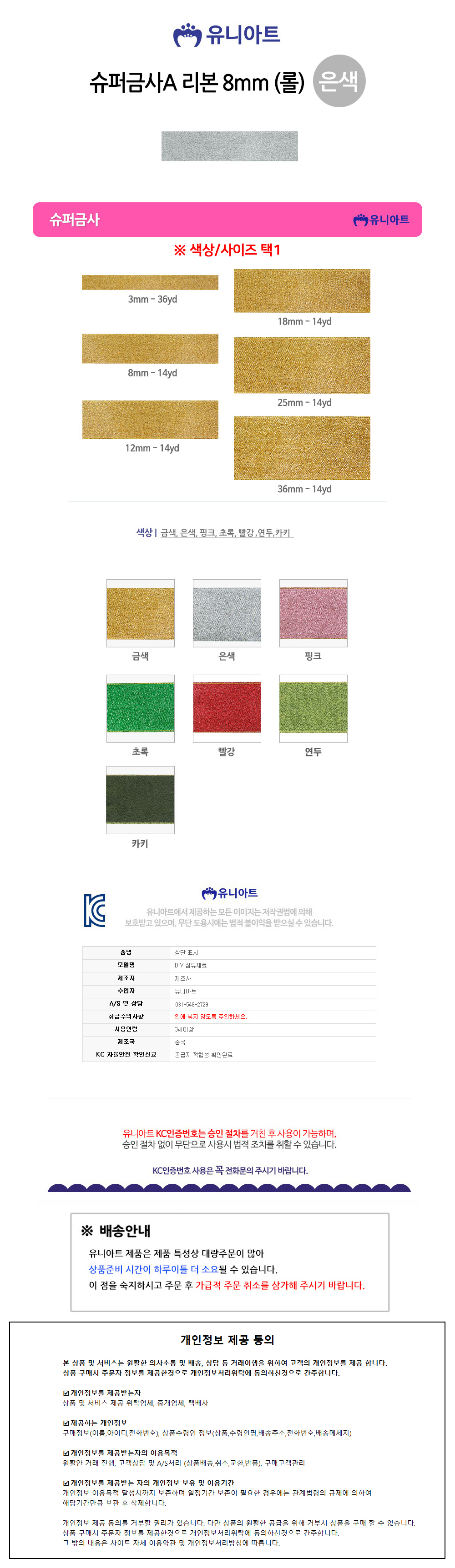 유니아트(리본) 4000 슈퍼금사A 리본 8mm (은색…